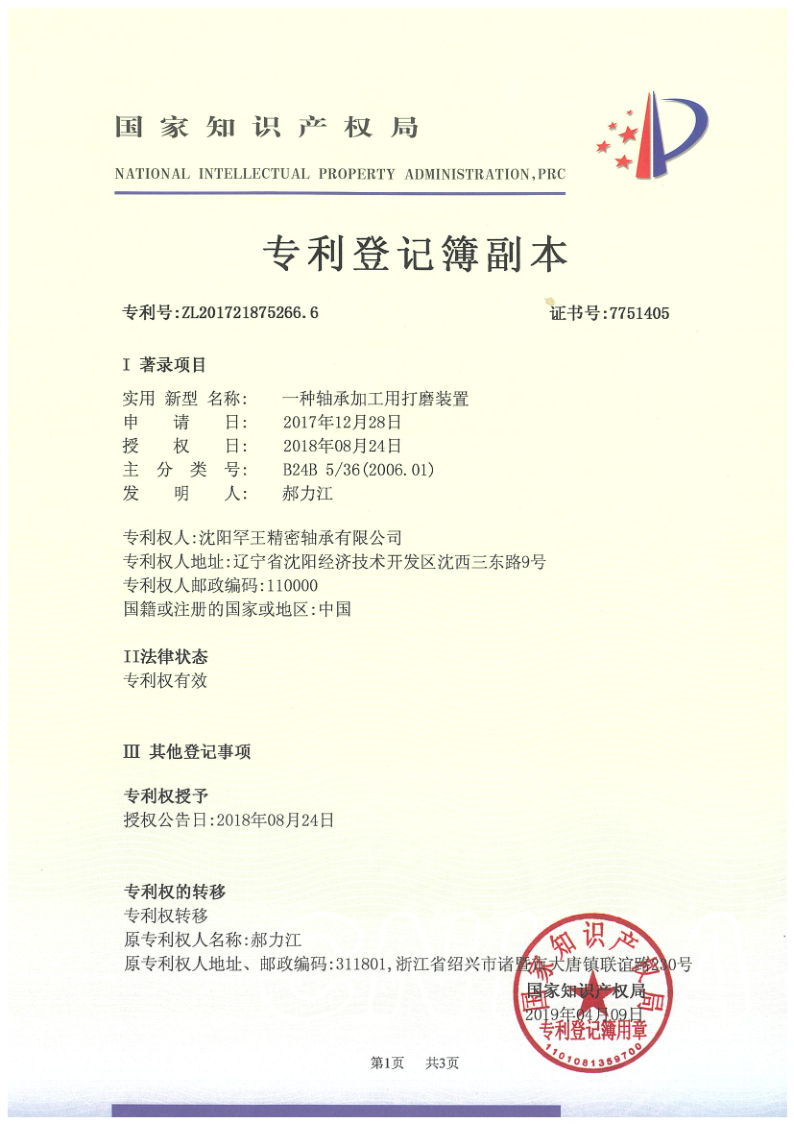 转让专利 一种轴承用加工打磨装置