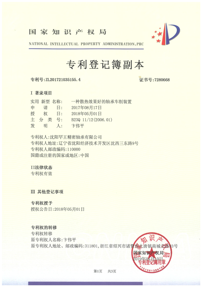 转让专利 一种散热效果好的轴承车削装置