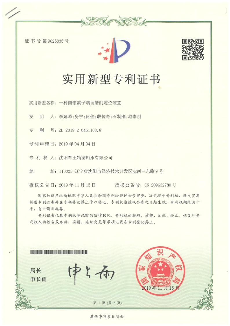 转让专利 一种圆锥滚子端面磨削定位装置_
